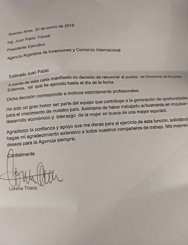 Es el caso de las hermanas de Jorge Triaca, Mariana y Lorena, directora del Banco Nación y directora de Asuntos Externos de la Agencia Nacional de Inversiones, respectivamente, quienes ya decidieron dar un paso al costado. Lo mismo sucederá con la esposa del jefe de cartera, María Cecilia Loccisano, quien es subsecretaria de Coordinación Administrativa hace 10 años. Infobae ya pudo confirmar que dejará su cargo cuando el decreto se haga efectivo.