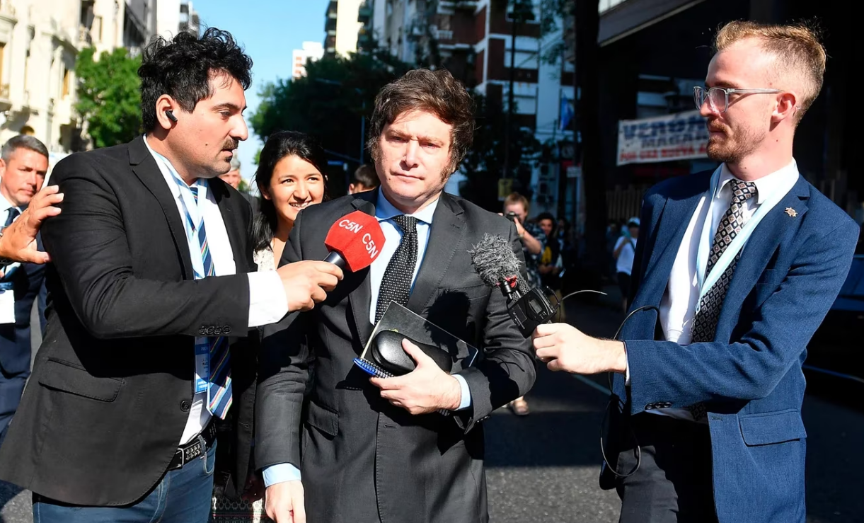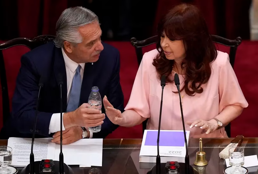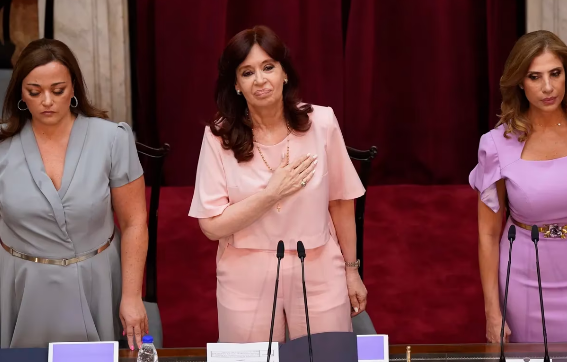 Con la vicepresidente Cristina Fernández sentada a su lado y un grupo de militantes en el exterior, el Presidente ofreció su discurso en el Congreso.