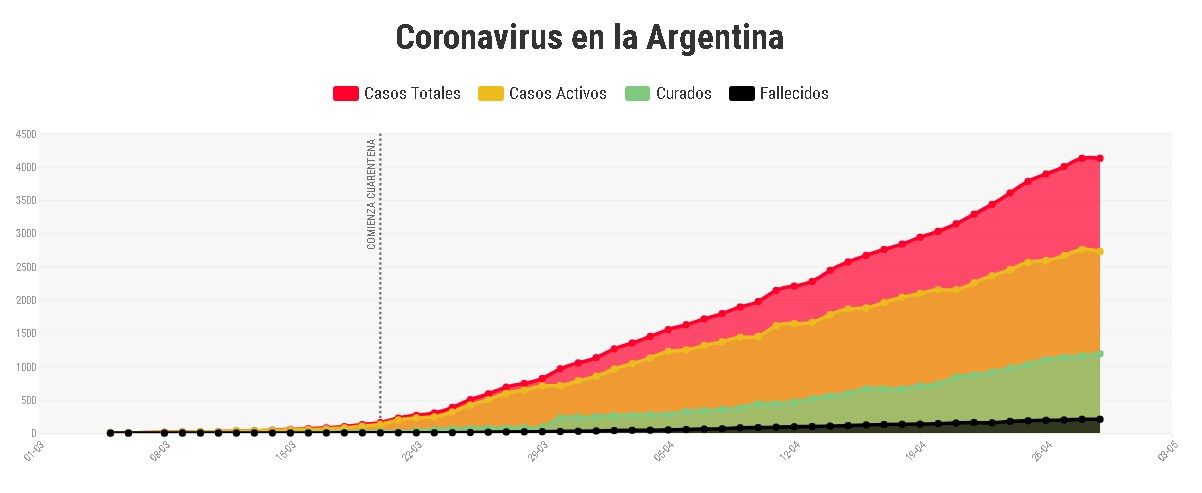 El Ministerio de Salud de la Nación informó este miércoles que en Argentina, la cantidad de personas que lograr superar el Covid-19 representa el 29% del total de los infectados, que hasta hoy, alcanza la cifra de 4.127.