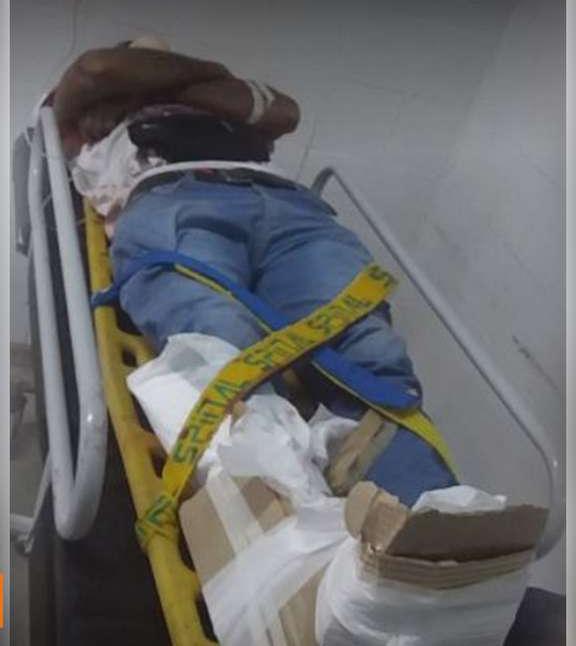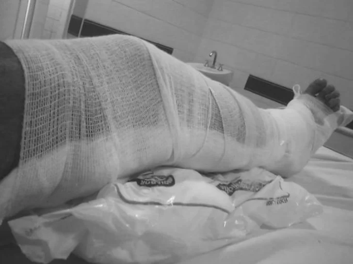 Sergio sufrió una fractura expuesta de tobillo y cuando llegó al hospital fue atendido por médicos y enfermeros que lo entablillaron con una caja de cartón a la que rodearon de papel y gasa, ante la falta de insumos.