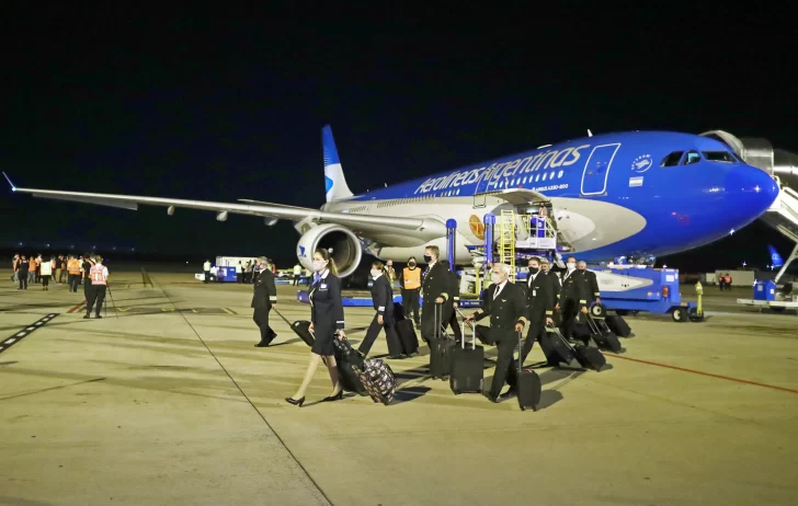 A cargo de los vuelos hay 10 tripulantes, entre pilotos y copilotos, que se irán alternando al comando de la nave, a quienes se suman despachantes, técnicos y personal de carga, para llegar a un total de 18 personas en cada avión.