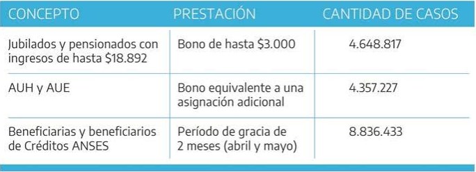 En el marco de las excepcionales medidas sanitarias, laborales y económicas decretadas por el Gobierno Nacional, ANSES otorgará un bono extraordinario que alcanzará a un total de 9.006.044 millones de jubilados, pensionados y beneficiarios de la Asignación Universal por Hijo (AUH).