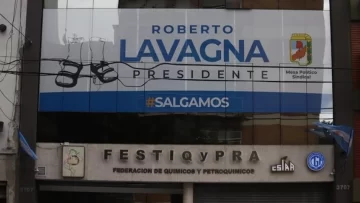 Un inmenso cartel que promueve la candidatura de Roberto Lavagna sorprendió este martes en la sede de la Federación de Químicos y Petroquímicos, en Buenos Aires.