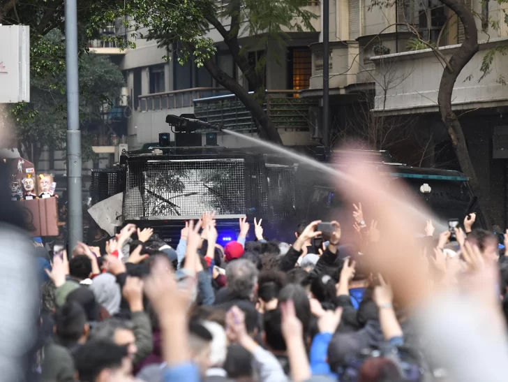 A las 18, la policía porteña intentó dispersar a los militantes con un camión hidrante y gases lacrimógenos, poco después de que un grupo de militantes avanzó sobre uno de los vallados y llegó hasta el edificio en el que vive Cristina Kirchner.