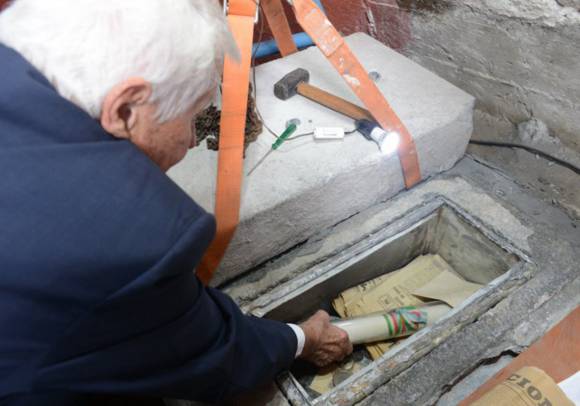 La cápsula del tiempo también contenía medallas que estaban enterradas bajo el monumento inaugurado en 1921, informó el gobierno porteño.