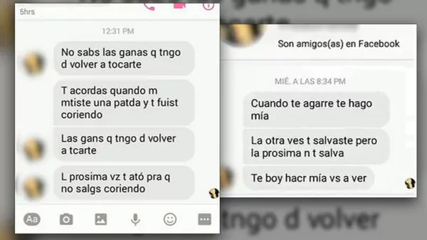 "No sabés las ganas que tengo de volver a tocarte", "¿Te acordás cuando me metiste una patada y te fuiste corriendo?", "Las ganas que tengo de volver a tocarte" y "La próxima vez te ato para que no salgas corriendo", fue la primera tanda de mensajes amenazantes.