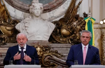 “Es un día de celebración entre Brasil y Argentina, pero también de agradecimiento”, dijo Lula luego de reunirse con Fernández en la Casa Rosada. “Jamas olvidaré el gesto cuando Alberto Fernández me fue a ver cuando estaba detenido en la Policía Federal. jamas olvidaré la solidaridad del pueblo argentino”, indicó el mandatario brasileño.