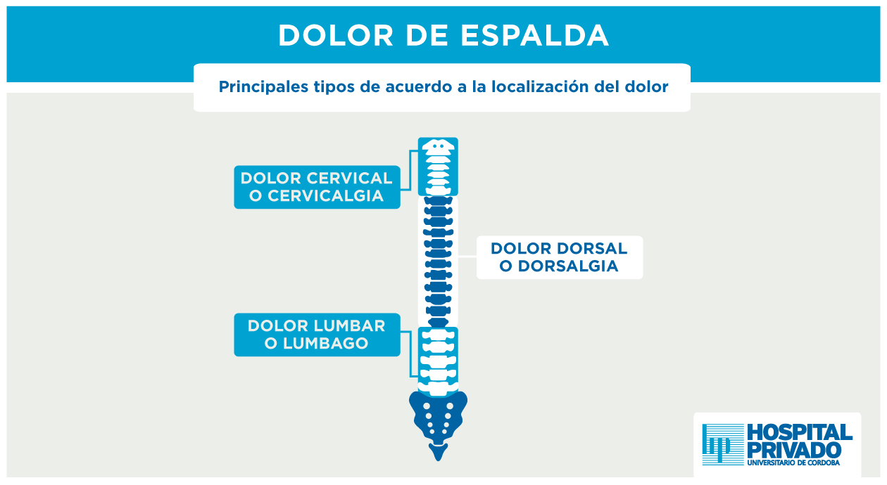 El doctor Juan Carlos De Battista, jefe del servicio de Neurocirugía de Hospital Privado y especialista en columna vertebral, refiere que pueden clasificarse según su origen (en mecánicas o inflamatorias) o bien por su duración. De acuerdo a esta última clasificación, la lumbalgia o “dolor de espalda” pueden dividirse en: