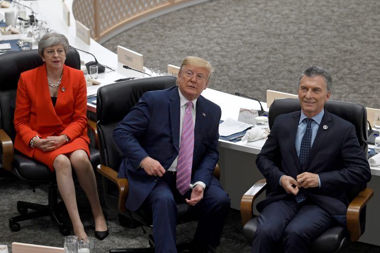 Junto a Macri estaba el presidente de los Estados Unidos, Donald Trump, durante esta primera cita conjunta de los Jefes de Estado, que se inició poco antes del mediodía luego del saludo de bienvenida que dio Shinzo Abe a los mandatarios visitantes y tras la fotografía oficial de la cumbre.