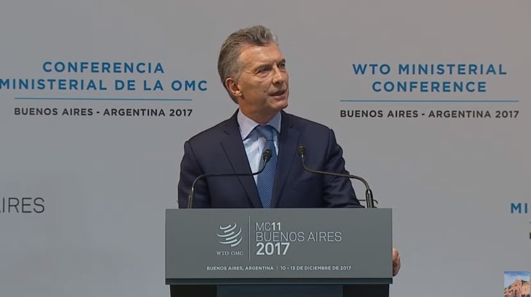 El presidente Mauricio Macri inauguró esta tarde la XI Conferencia Ministerial de la Organización Mundial de Comercio (OMC) en un acto en el Centro de Convenciones de Buenos Aires, en el que defendió el sistema multilateral y cuestionó al proteccionismo.