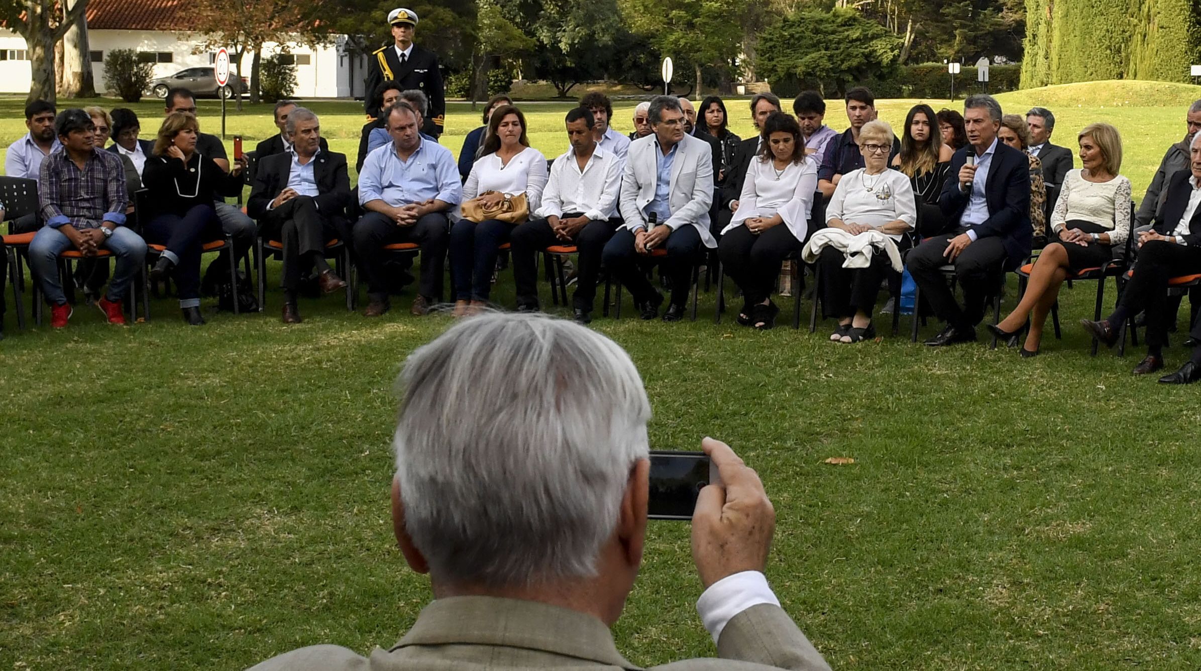 “Este 2 de abril es totalmente distinto al que vivimos juntos el año pasado, porque algo que parecía imposible, después de tantos años de resignación y angustia, con diálogo y diplomacia madura logramos empezar a saldar la deuda que teníamos todos los argentinos con ustedes”, dijo Macri a los familiares de los caídos en Malvinas.