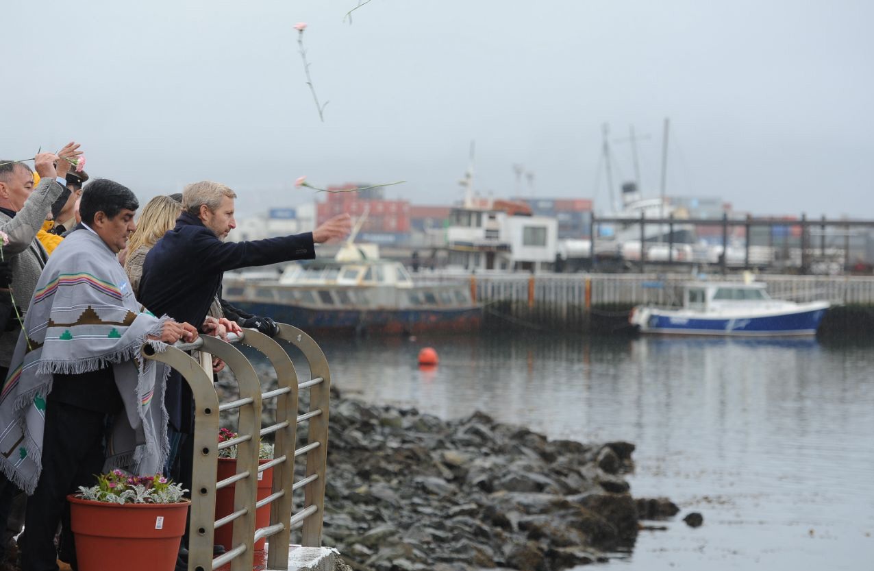 El acto central en Ushuaia por el 36º aniversario del inicio de la Guerra de Malvinas, incluyó la colocación de ofrendas florales, algunas de ellas arrojadas al mar, y concluyó con la presentación de Alejandro Lerner, que cantó en vivo el tema “La isla de la buena memoria” cuya letra está impresa en una placa que forma parte del Monumento a los Caídos.