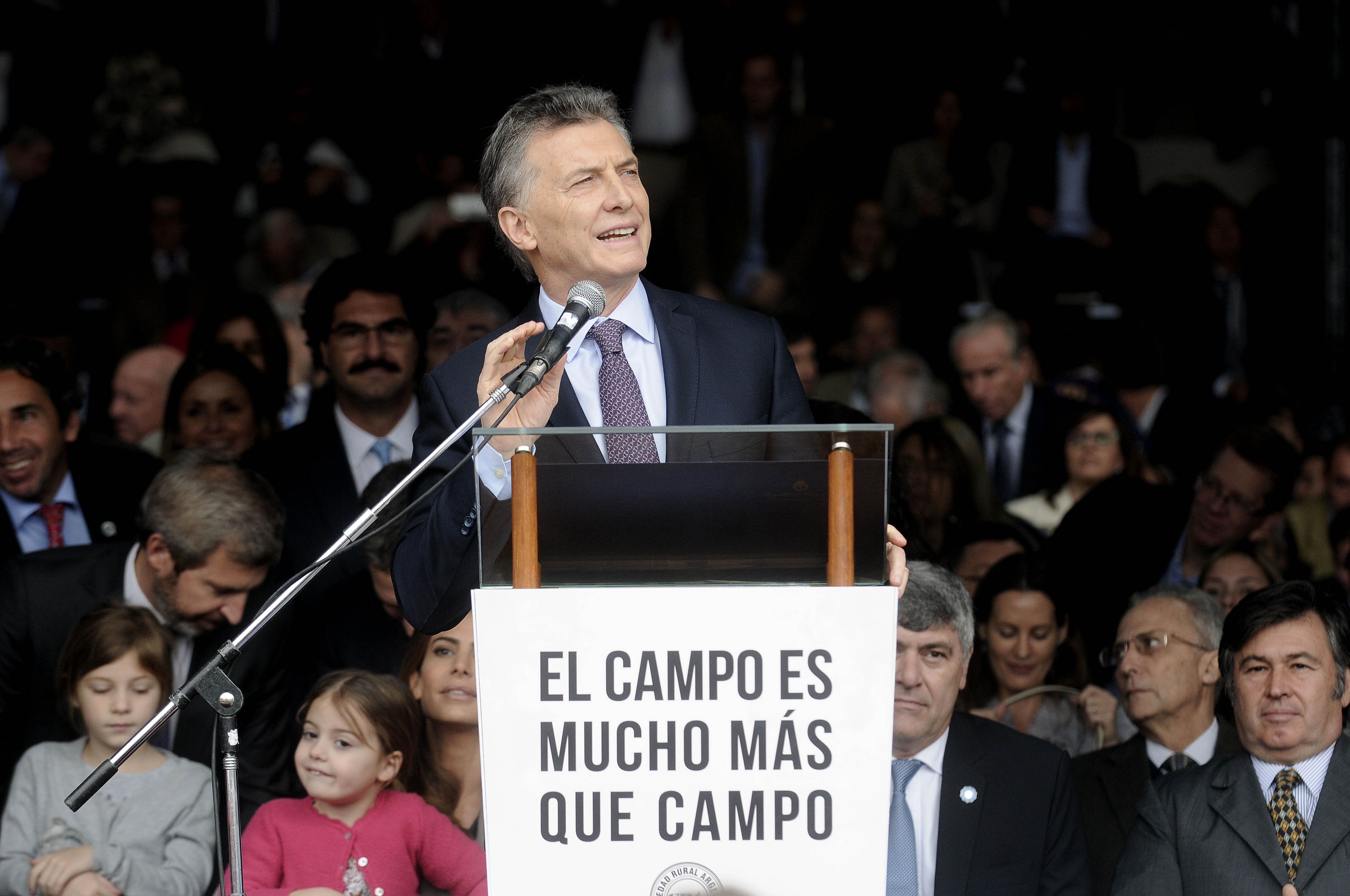 "Cuando crece el campo, crece la Argentina", dijo Macri en su discurso en el felicitó a los productores agropecuarios por el "récord de una cosecha histórica" a pesar de que el año "vino duro por el cambio climático", y adelantó que en el gobierno están ‘preparando una reforma impositiva‘.