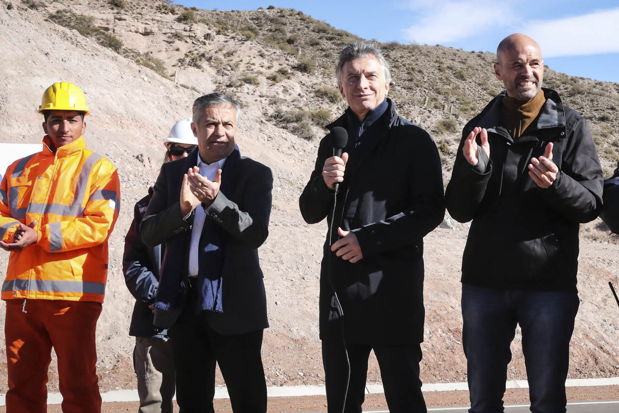 El jefe de Estado destacó la importancia de la obra para Mendoza para el transporte, ya que allí se "producen cosas valiosas como la cirulea, la cereza y el ajo" e hizo referencia al acuerdo entre la Unión Europea y el Mercosur: "Hoy más que nunca, con más de 200 mercados abiertos en el mundo, queremos estar conectados, que todos los mendocinos y el país estén conectados en el mundo".