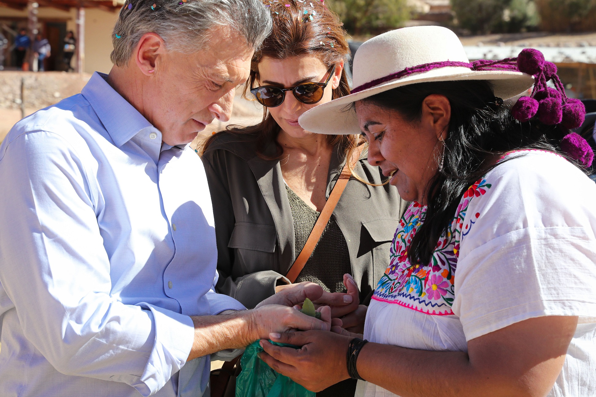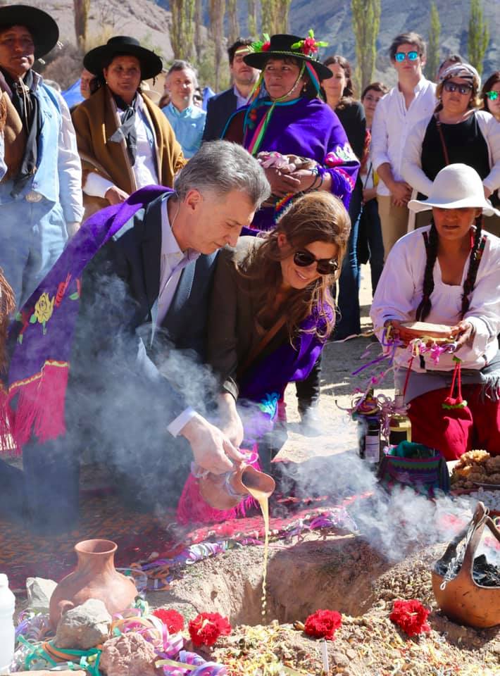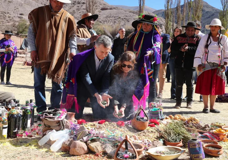 "Permiso a las comunidades, permiso a la Pachamama. Agradecerle, soy Mauricio Macri, vengo de Buenos Aires con mi mujer Juliana, queremos agradecerle por siempre cuidarnos, siempre acompañarnos a los argentinos", dijo el presidente.