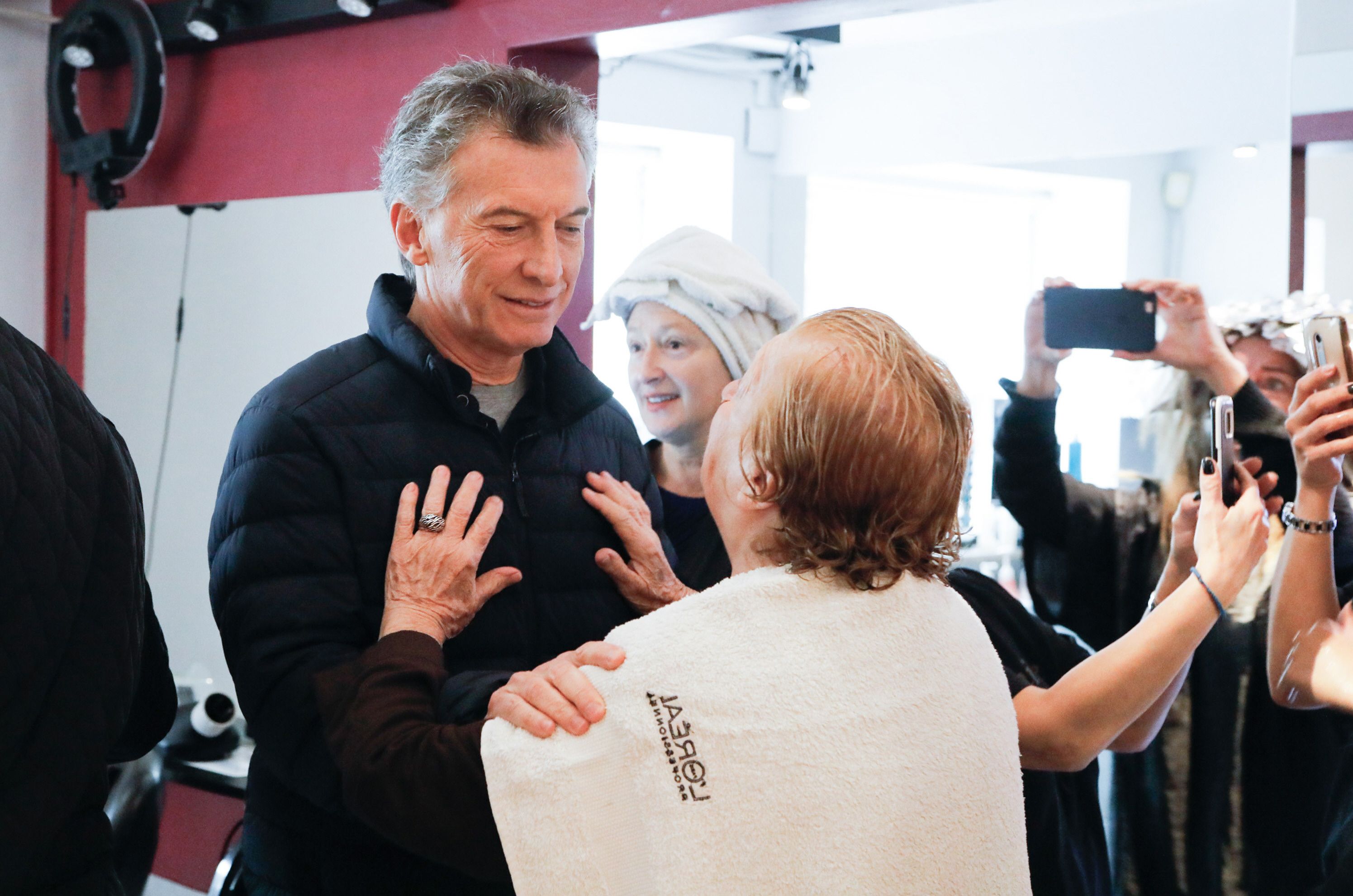 Entre rulos y tinturas. En una peluquería de Villa Devoto, Mauricio Macri, recibe el afecto de las clientas. Igual imagen se repitió en una confitería y en las veredas. El Presidente accedió a sacarse muchas selfies.