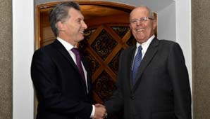 Perú.- El presidente Macri arribó a Lima donde mantuvo una audiencia privada con el presidente electo Pedro Pablo Kuczynski, posteriormente compartió una cena con la delegaciones presentes y este jueves asistirá a la ceremonia de asunción del nuevo mandatario.