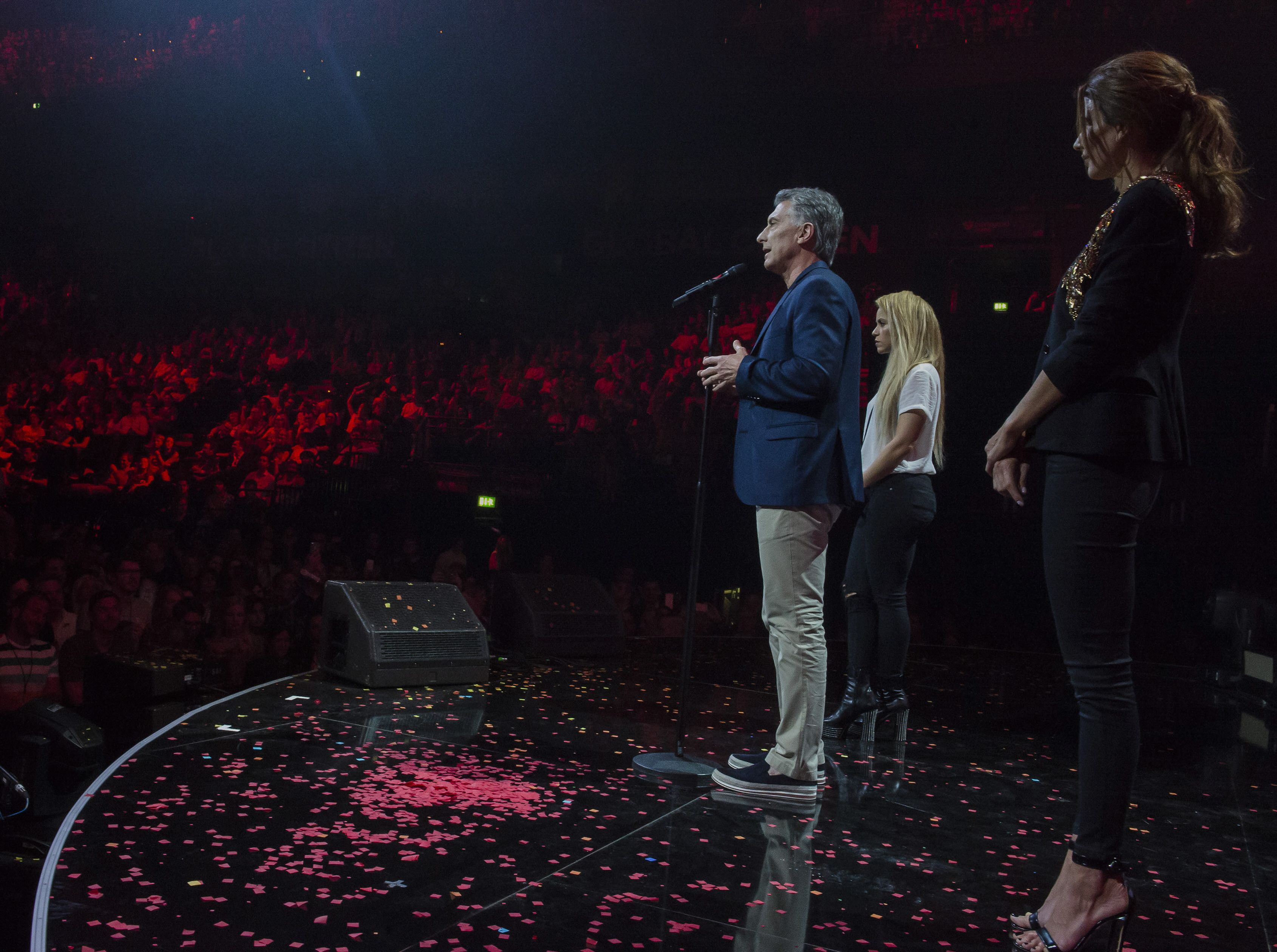 Macri lanzó desde el escenario Barclaycard Arena un mensaje en favor de la unidad contra el cambio climático, a favor de la educación y de la igualdad de oportunidades para las niñas, además de alertar sobre la necesidad de estar a la altura de los cambios en el mundo.