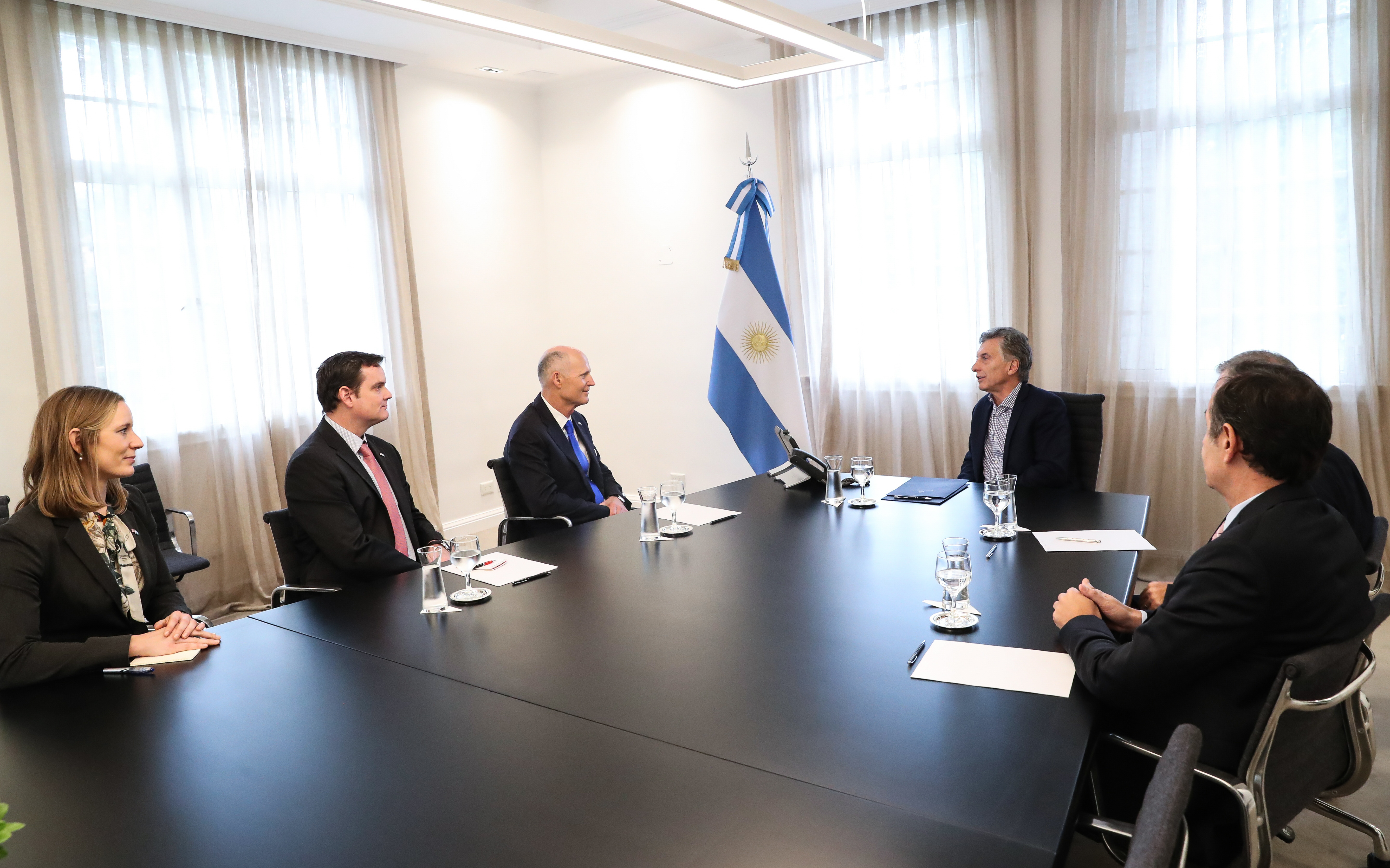 Tras la reunión de Gabinete Macri recibió a una comitiva de legisladores de EEUU liderada por el senador republicano Rick Scott que llegó junto con el embajador Edward Prado.