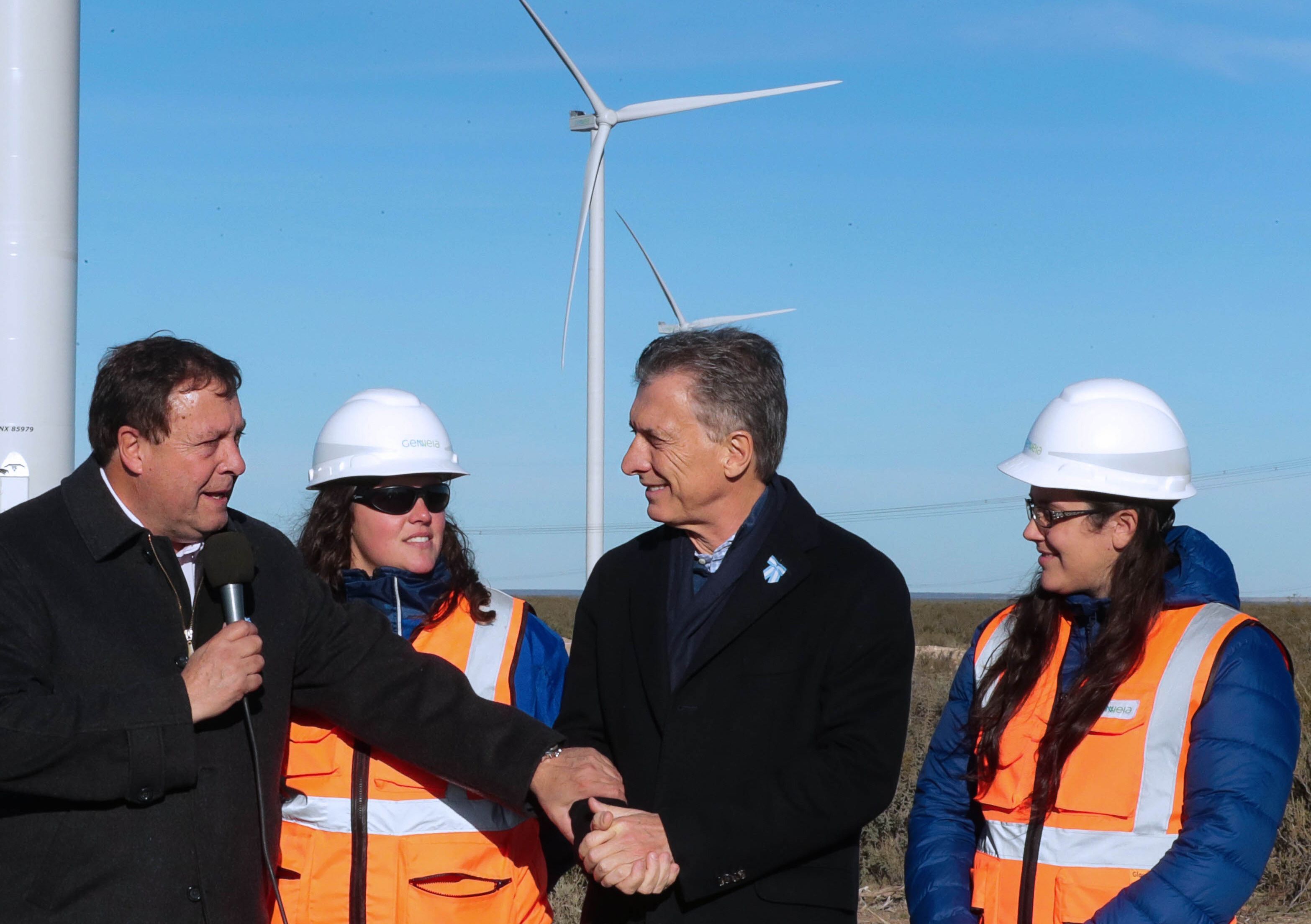 "Argentina se ha comprometido, como parte central del cambio que emprendimos, a volver a generar energía, y ser importantes productores mundiales de energía", dijo Macri. Además destacó la creación de empleos de calidad que el sector de energía renovables está generando en el país. "Todas las comunidades están viviendo alrededor de esta transformación", sostuvo el jefe del Estado, para quien es algo "muy importante para las economías regionales", ya genera "más de 9.000 puestos de trabajo"."Y eso es lo que queremos, trabajo. Trabajo para todos los argentinos. Ahí donde nacieron, sin tener que abandonar nunca más su lugar, porque en su lugar hay posibilidades de desarrollo", sostuvo. El Presidente habló de "las revoluciones" que su gobierno inició para dotar de infraestructura los aeropuertos y rutas. "Este invierno vamos a batir una nuevo récord, más de 40 vuelos por día, va a estar lleno de turistas", le dijo a Weretilneck, en referencia a Río Negro.