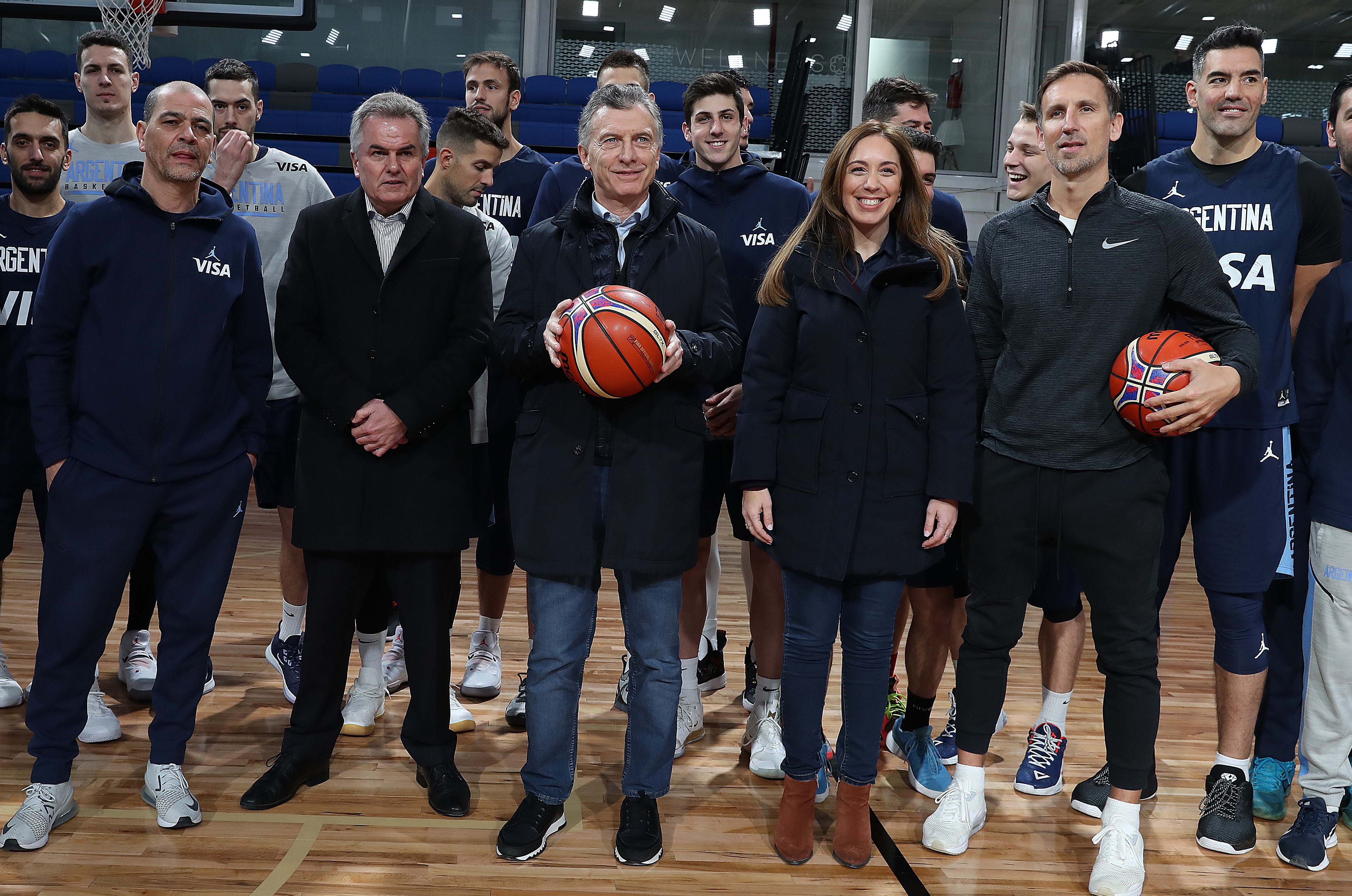 En Bahía Blanca. Mauricio Macri visitó junto a la gobernadora Vidal, el Dow Center, un complejo de entrenamiento de alto rendimiento deportivo, ubicado en Bahía Blanca, donde saludó a integrantes de la Selección Argentina de básquetbol.