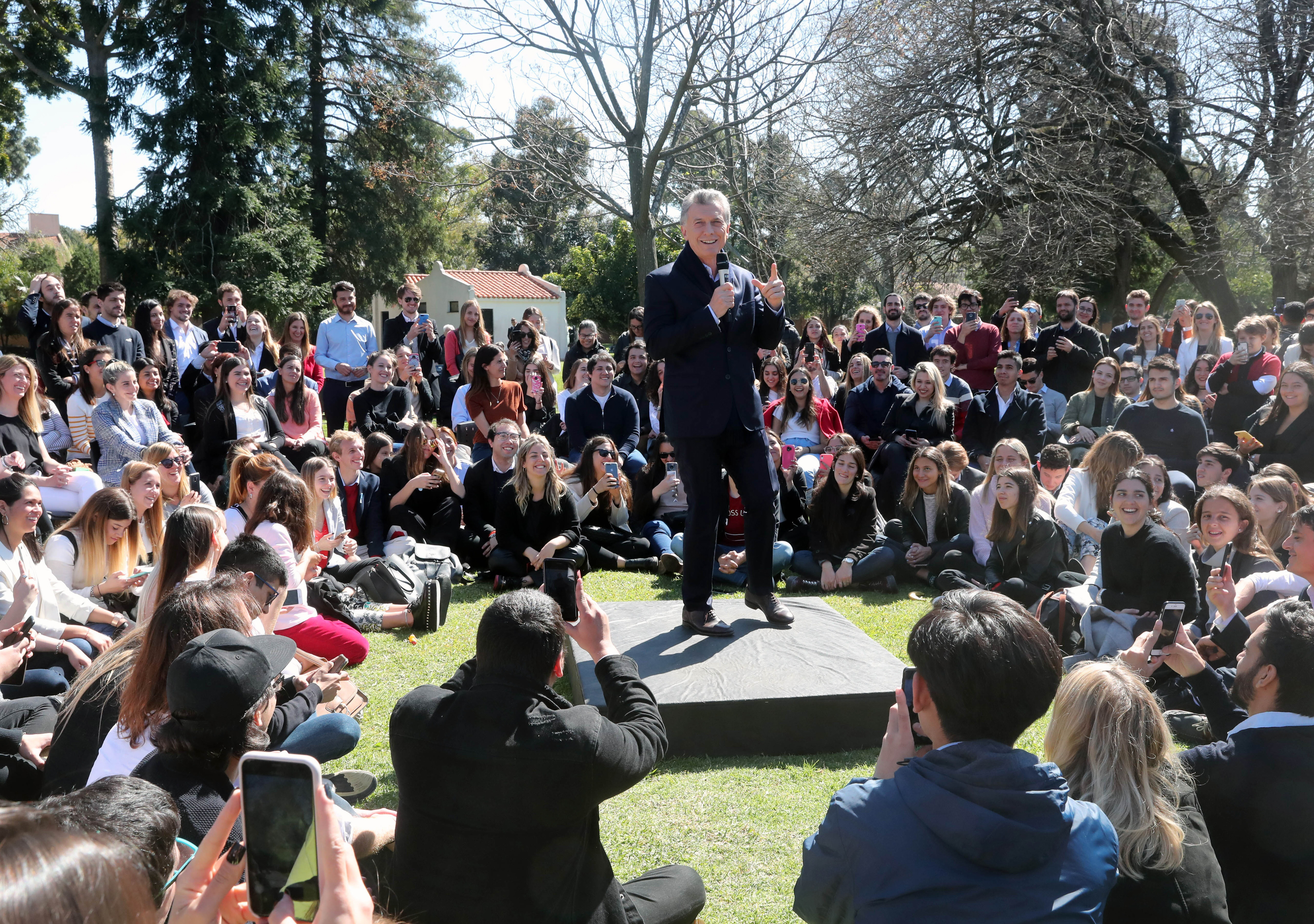 Cuidados. Macri, que se reunió con jóvenes en la residencia de Olivos, destacó su interés de cuidar a los jubilados.