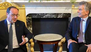 Por su parte, el presidente de Francia, Francois Hollande, planteó sus intenciones de ‘apoyar‘ a Argentina en su ‘reintegración‘ en la ‘comunidad financiera internacional‘, al firmar una serie de convenios bilaterales con el mandatario Mauricio Macri.