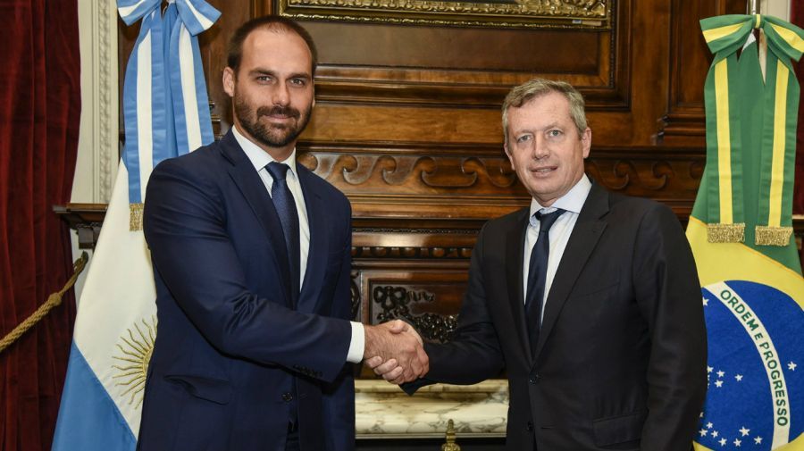 "Conversamos sobre la idea de dar un salto positivo a la relación estratégica bilateral", explicó un funcionario del Gobierno sobre la reunión de Macri y el hijo de Bolsonaro.