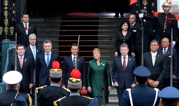 El presidente Mauricio Macri participó ayer de la ceremonia de asunción de su par del Perú, Pedro Kuczynski, que se realizó en el Congreso de Lima con la participación de otros mandatarios de la región, donde ratificó su proyecto de ‘ir avanzando hacia una convergencia entre los países del Mercosur y de la Alianza del Pacífico‘. Macri participó de los actos de traspaso del mando presidencial en el vecino país junto a sus colegas de Chile, Michelle Bachelet; de México, Enrique Peña Nieto; de Ecuador, Rafael Correa; de Colombia, Juan Manuel Santos; y de Paraguay, Horacio Cartes y el rey emérito de España, Juan Carlos de Borbón.