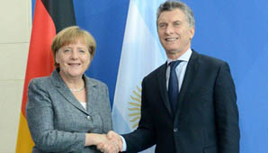 Alemania.- Tras haber sido recibido con honores militares, Mauricio Macri compartió un almuerzo de trabajo con la canciller Angela Merkel, en la sede de la Cancillería Federal alemana. En la conferencia de prensa que compartieron tras el encuentro, el Presidente argentino confirmó que ambos países tienen la intención de acelerar los tiempos para la aprobación del tratado de libre comercio entre la Unión Europea y el Mercosur.