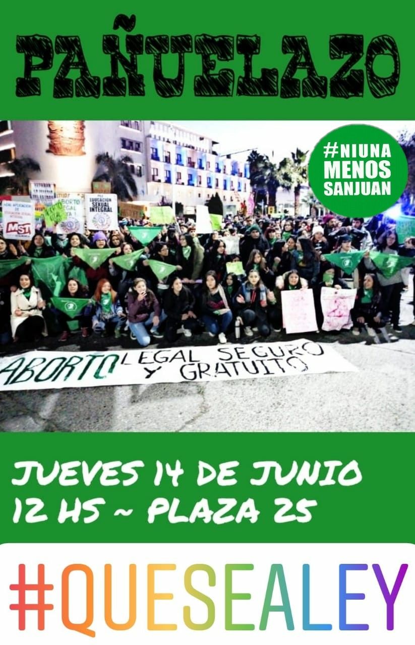 Mientras que, la organización Ni Una Menos San Juan, convocó a un Pañuelazo, también en la Plaza 25, pero a las 12 de este jueves. El objetivo, pedir que el proyecto finalmente sea ley.