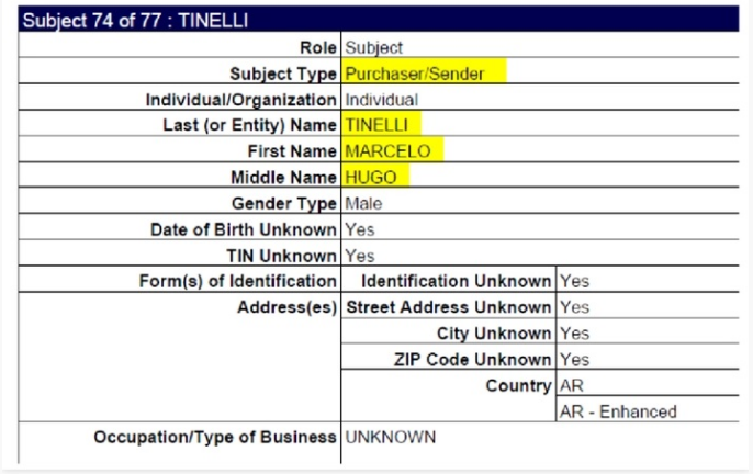 Se desconocen los montos del giro de dinero, así como las fechas exactas y la cantidad operaciones realizadas por Tinelli, ya que en el reporte de la FInCEN no se detalló.