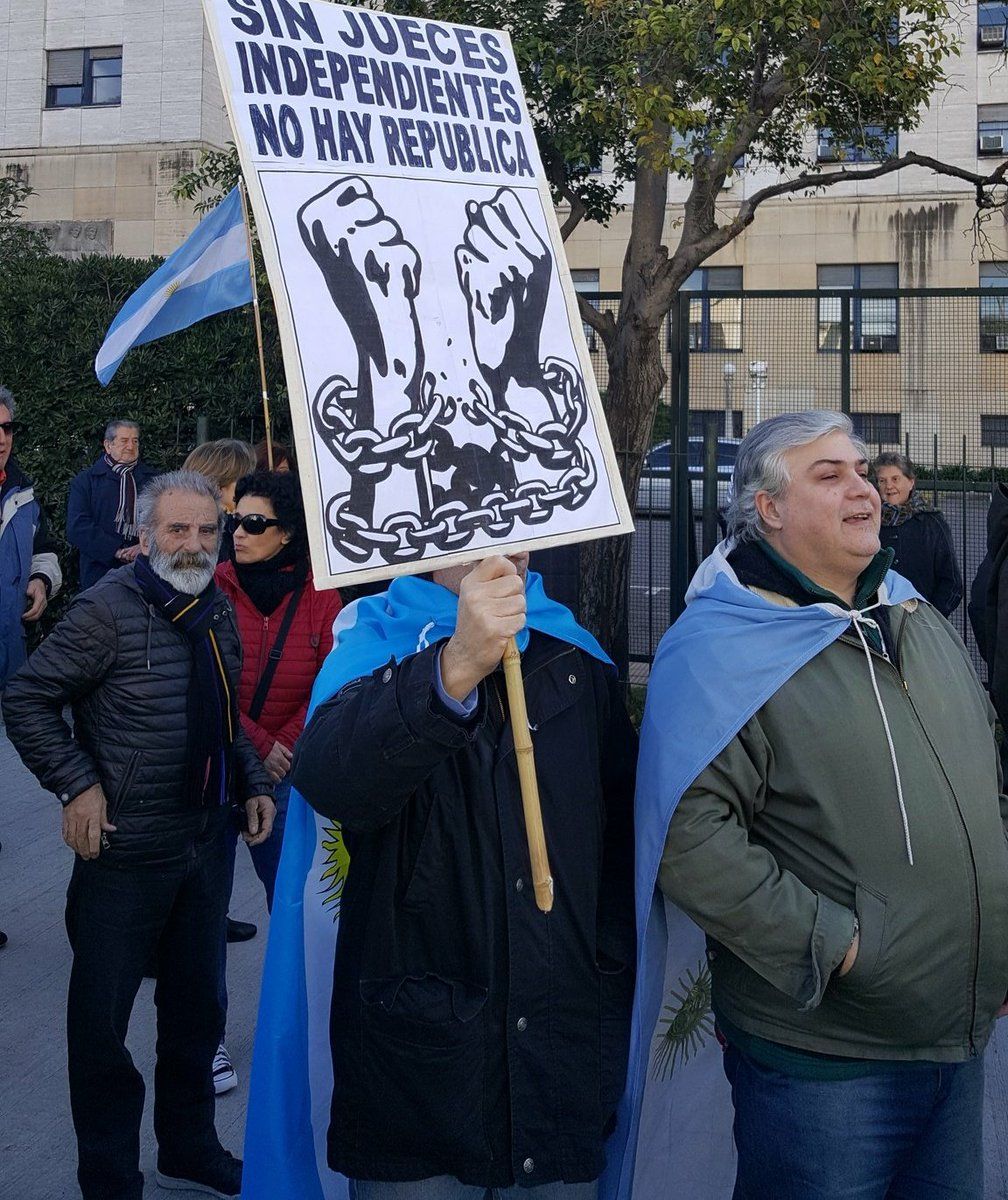 Desde las 15 y hasta pasadas las 17, con la sede judicial cerrada por el feriado del Día de la Bandera, los manifestantes pidieron frente a los tribunales por "una justicia justa", coincidiendo el comienzo del acto con el lanzamiento del Frente Ciudadano de Cristina Kirchner en el estadio de Arsenal de Sarandí.