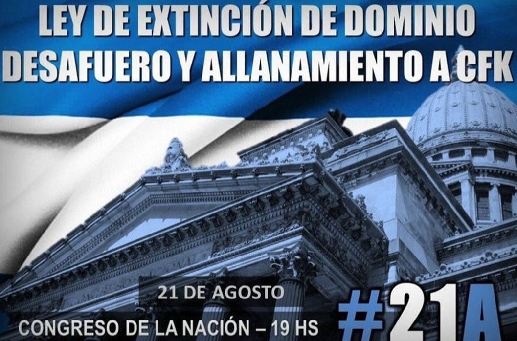 Luego de que se frustrase la sesión del miércoles pasado para tratar los allanamientos a Cristina, el macrismo activó por las redes una convocatoria a una marcha con el objetivo de reclamar el desafuero de la exmandataria y la sanción de la Ley de Extinción de Dominio, para devolver al Estado los bienes provenientes no sólo de la corrupción sino también del narcotráfico.