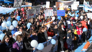 Buenos Aires, 19 de junio.- Más de cuatro mil personas marcharon hoy por las calles de San Luis y Mendoza en rechazo al proyecto de ley que autoriza el matrimonio entre personas del mismo sexo, con duras posturas especialmente en la provincia puntana, donde el obispo Jorge Lona volvió a asegurar que "la homosexualidad es una desviación que tiene cura".