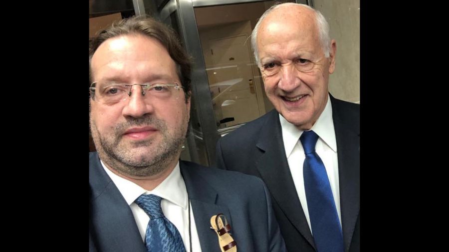 El exministro de Economía posó en una foto junto a su hijo, Marco, y Alejandro Rodríguez, en la que mostraron los prendedores con los que buscaron darle un poco de color a su vestimenta. Mientras Roberto lució una bandera sobre el ojal de su traje, Marco sorprendió a propios y extraños con una pequeña sandalia.