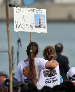 Mar del Plata, 9 de enero.- Más de 200 mil personas se encontraron concentradas frente a la base naval de Mar del Plata para participar del acto de recibimiento de la Fragata Libertad que fue encabezado por la presidenta Cristina Fernández de Kirchner.