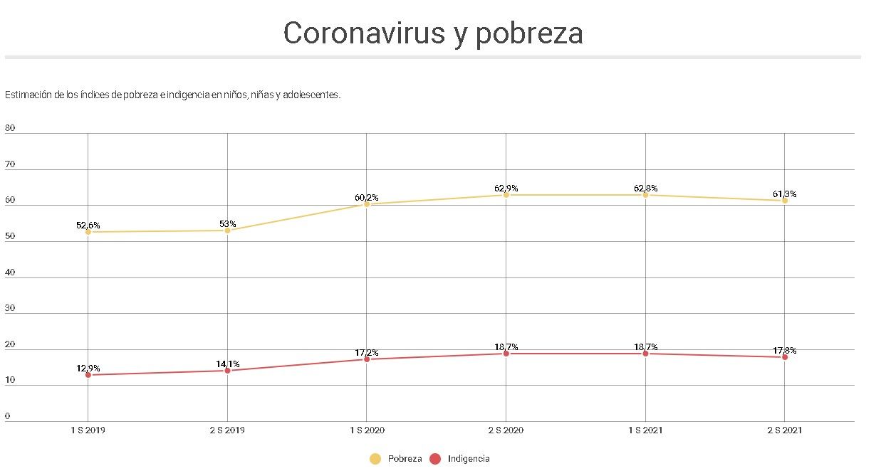 En un informe reciente, Unicef estimó que la pobreza entre los más chicos alcanzará este año al 63% en todo el país y a 90% en los barrios populares, como consecuencia de la pandemia.