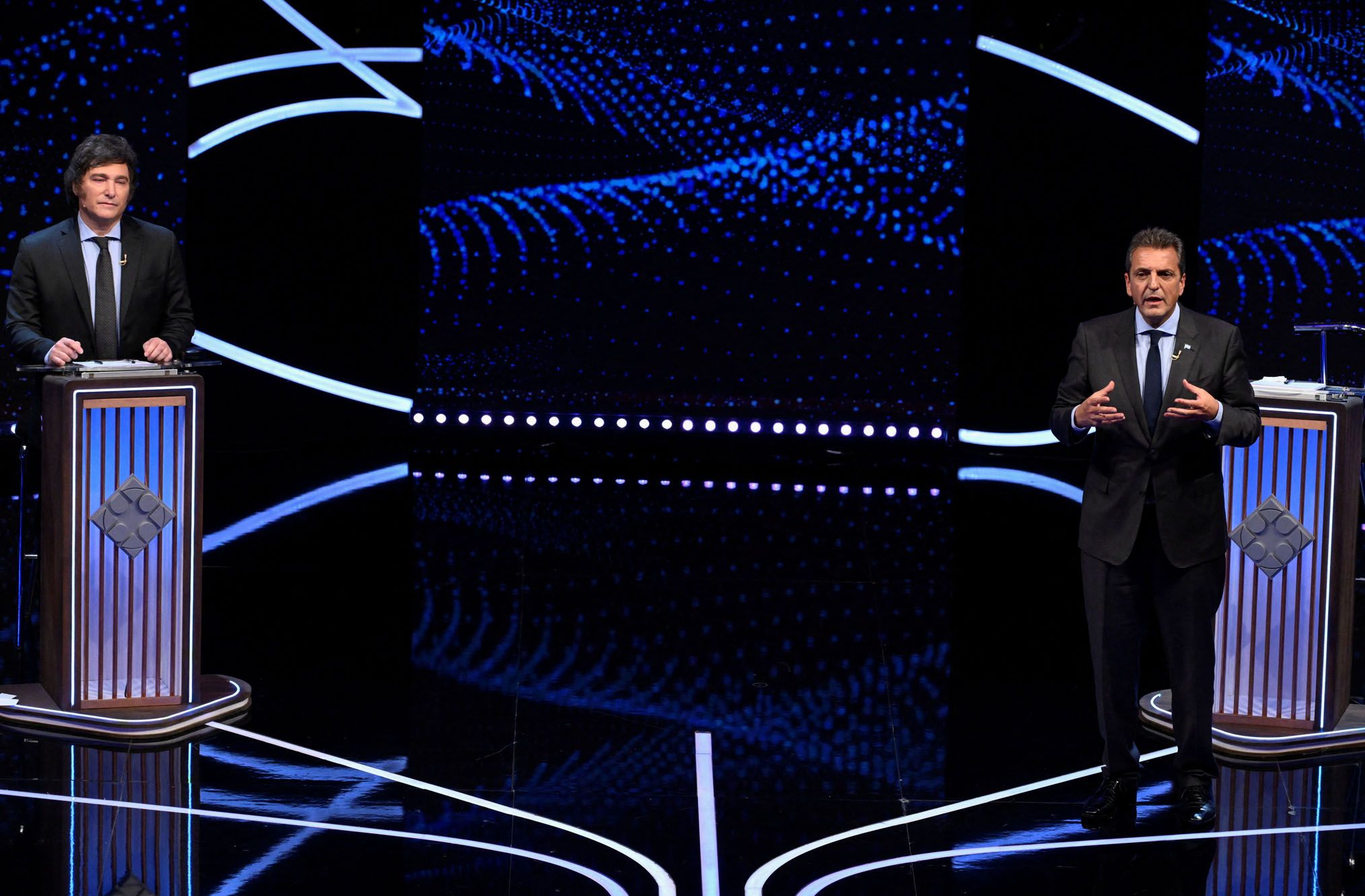 Durante su minuto de presentación, Massa planteó ‘un gran cambio para la Argentina, un gran acuerdo con políticas de estado, diálogo, consenso y respeto a los que piensan distinto’ con lo que le dio volumen a su propuesta de ‘un gobierno de unidad nacional’. Milei, por su lado, se presentó como un economista experto en crecimiento ‘con y sin dinero’: ‘Sé cómo hacer crecer a una economía, crear puestos de trabajo con buenas remuneraciones, terminar con la pobreza y la indigencia. Sé cómo exterminar el cáncer de la inflación’, afirmó.