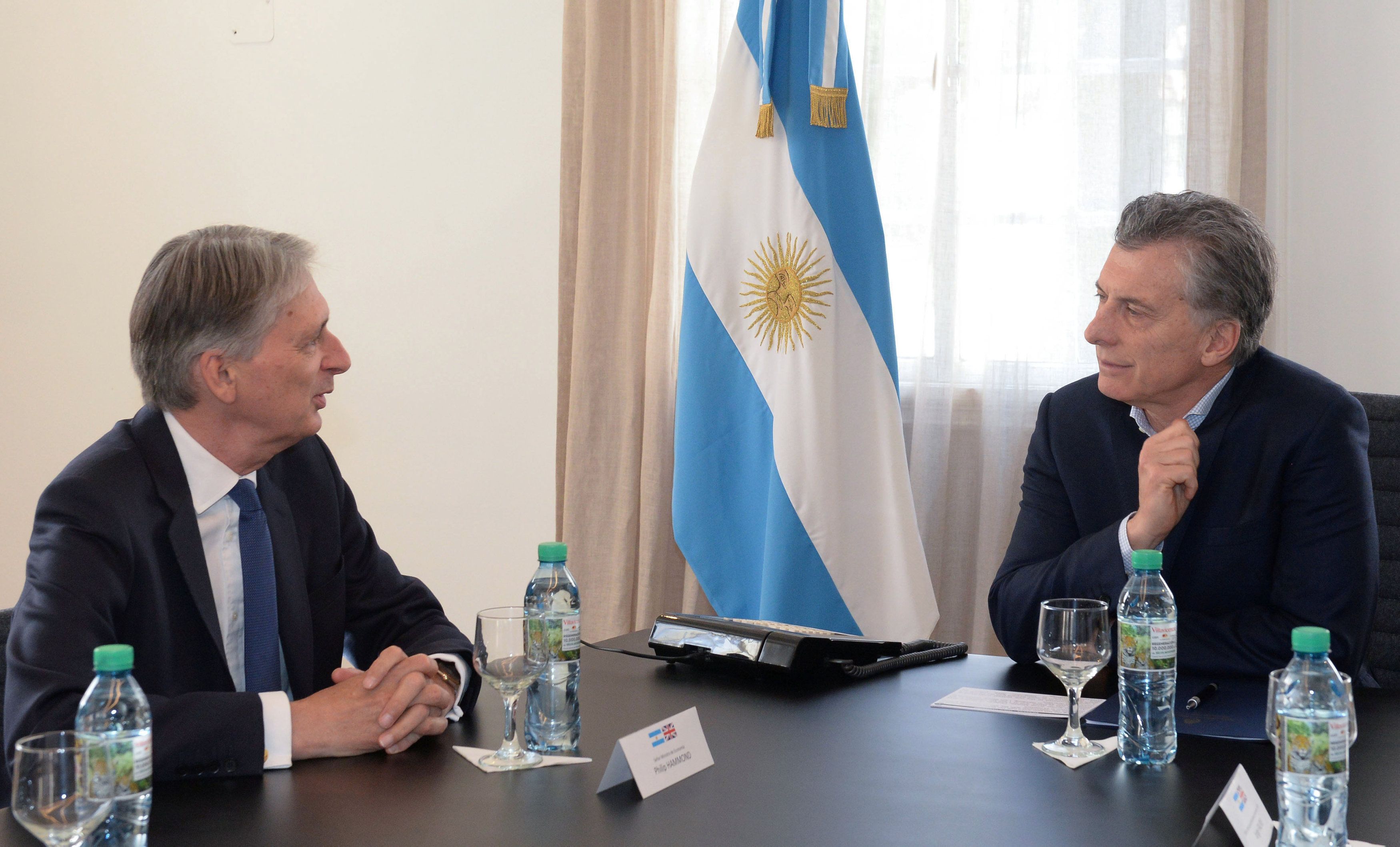 "En Argentina hoy por importantes conversaciones con el presidente @mauriciomacri sobre cómo podemos profundizar la asociación económica entre el Reino Unido y la Argentina", escribió Hammond en su cuenta de Twitter pocos minutos después de su encuentro en la Quinta de Olivos con el Presidente.