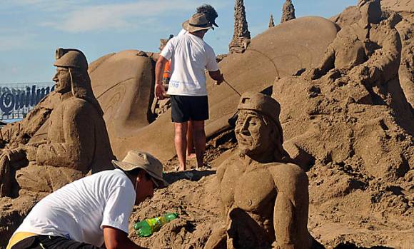 La tarea, que comenzó el pasado jueves, se dificultó al día siguiente por un fuerte chaparrón que cayó sobre el mediodía. Pero las 12 personas que integran el grupo de Pro Sand Art, en el que hay portugueses, estadounidenses, brasileños, españoles, argentinos y de otros países, reanudaron la tarea.