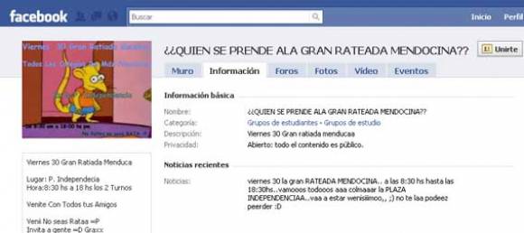 La famosa red social logró que una importante cantidad de chicos se uniera a ese llamado masivo para faltar a la escuela y en su lugar asistir a la plaza independencia desde las 8.30 hasta las 18.30. La página ya cuenta con 11.500 miembros.