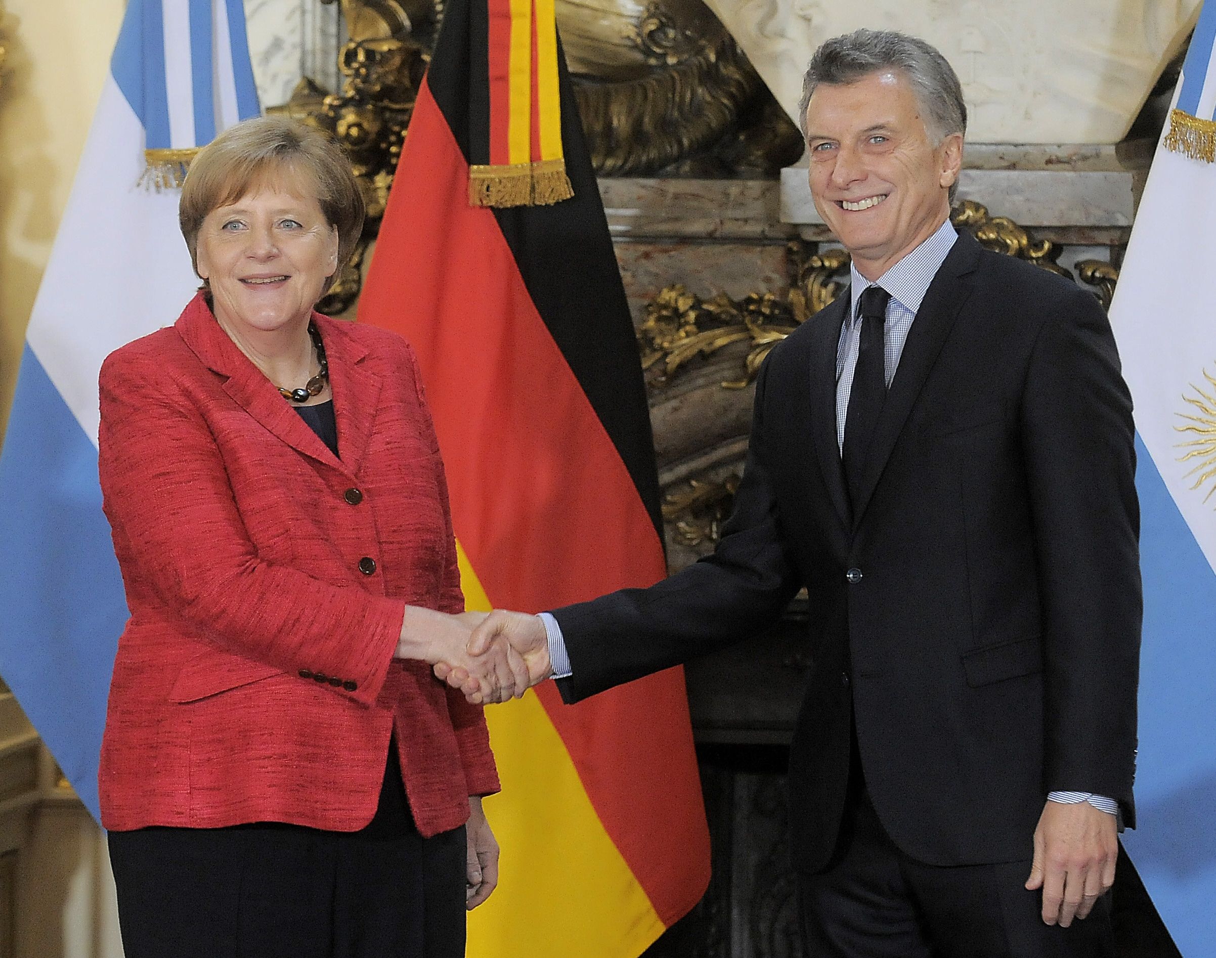 ‘Argentina se ha abierto en varios sentidos y estoy profundamente convencida de que va a desembocar en un sendero de crecimiento que va a crear más empleo para la gente‘, dijo Merkel en una conferencia de prensa conjunta con Macri en el Salón Blanco de la Casa Rosada, en el marco de la primera visita oficial de un mandatario alemán al país después de 15 años.