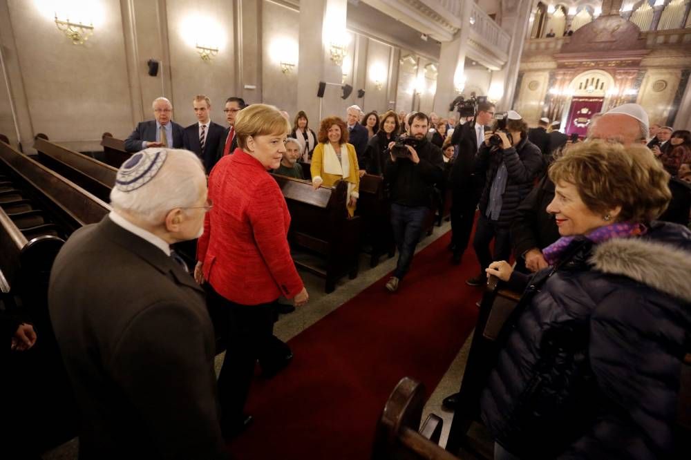Luego la canciller alemana se dirigió al Templo Libertad, la sinagoga ubicada en la esquina de la avenida Córdoba y la calle libertad, donde se reunió con integrantes de la coletividad judía en la Argentina.