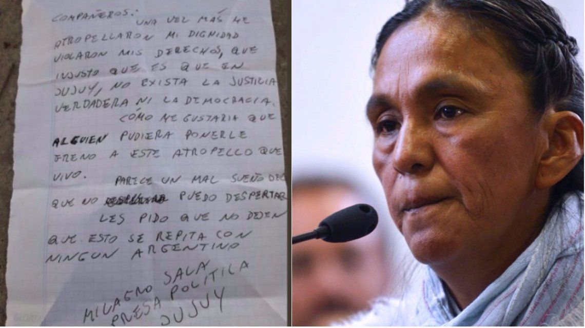 Sala, que había obtenido la prisión domiciliaria por pedido de la Comisión Interamericana de Derechos Humanos (CIDH), regresó a la cárcel por decisión del juez Pablo Pullen Llermanos. En la carta, que firmó como "presa política", rogó: "Les pido que no dejen que esto se repita con ningún argentino".