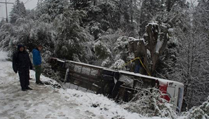 Buenso Aires.- Esta mañana un micro de una escuela de ski volcó camino al Cerro Catedral. Aprovechando las nevadas que cayeron en la ciudad durante la madrugada, el Club de Ski de San Carlos de Bariloche transportaba a un grupo de 10 chicos y cuatro adultos para una excursión arriba del cerro. Por la helada, el conductor perdió el control del vehículo y desbarrancó a la altura del kilómetro 1.5 de Avenida Pioneros. Sólo uno de los nenes resultó herido con cortes en el labio y una mujer con un fuerte golpe en la cabeza.
