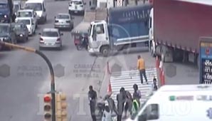 Salta, 12 de marzo.- Esta mujer volvió a nacer, luego de protagonizar un verdadero milagro. La joven, de unos 30 años, iba en su moto a la par del camión, cuando perdió el control de su rodado y terminó abajo del vehículo de gran porte. El hecho ocurrió el martes a las 15.30, en la ciudad de Salta.