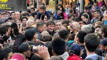 Como parte de su visita a la ciudad sureña, el libertario recorrió el centro comercial junto a sus candidatos provinciales, donde dialogó con los turistas y vecinos que se acercaron a saludarlo.