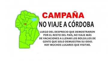 Otro mensaje señala que la provincia es "linda, pero está llena de gorilas y garcas" e impulsa a vacacionar en Las Grutas, en Río Negro. La propuesta es a boicotear Córdoba y elegir "otros lugares" para pasar el verano.