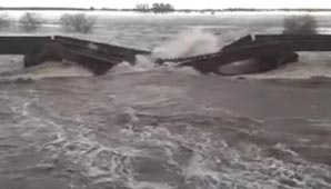 Santa Fe, 14 de agosto.- Las imágenes fueron tomadas el lunes pero se dieron a conocer en las últimas horas. En ellas puede verse la impactante manera en que un puente ferroviario en Santa Fe es derribado por el agua.